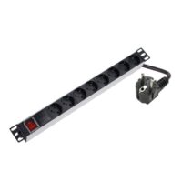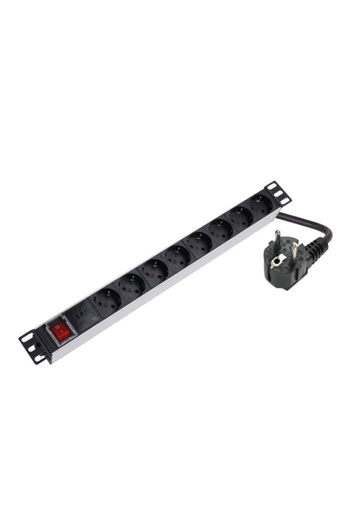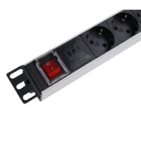 19″ 8 rozečių aliuminis maitinimo blokas (rozetynas) su mygtuku ir apsauga nuo viršįtampių