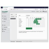 Kiekvieną išėjimą galima įjungti ir išjungti pagal dabartinį laiką ir savaitės dieną. Kiekvieno išėjimo laiko grafikas gali skirtis. PowerBOX 4KF: skirta daugumai ES / Vokietijos (F tipas – „Schuko“ – maks. 16 A). Elektriniai parametrai (A, W, kWh, TPF, V, Hz) matuojami dideliu tikslumu kiekviename išėjime. Pritaikymas: