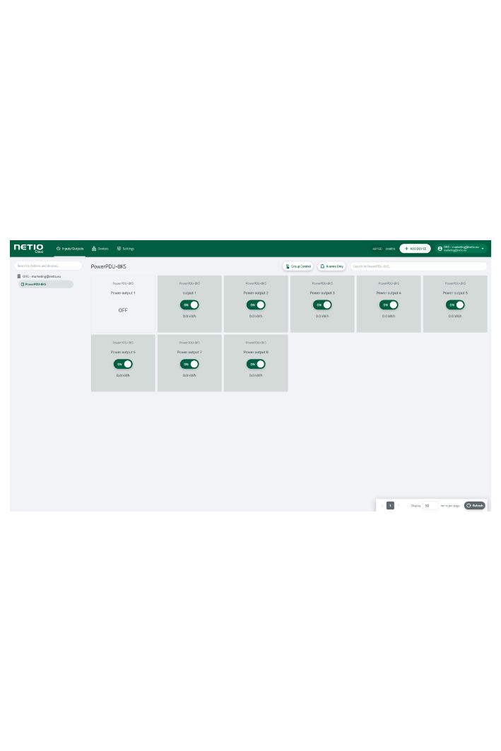 Naudojant „NETIO Cloud“ paslaugą, išėjimus galima valdyti iš bet kurios vietos. Už mokestį teikiama „NETIO Cloud“ paslauga naudoja SSL saugumą ir serverius Europoje.