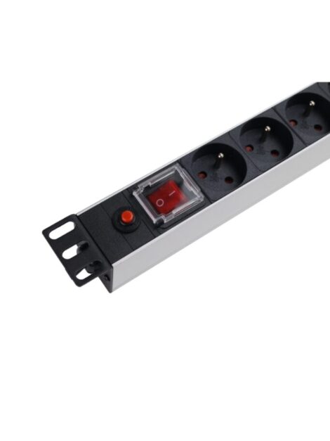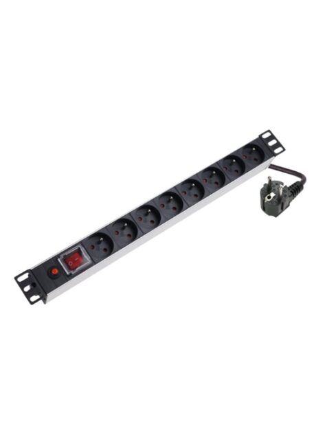 19″ 9 rozečių maitinimo blokas (rozetynas) su mygtuku ir 3m kabeliu